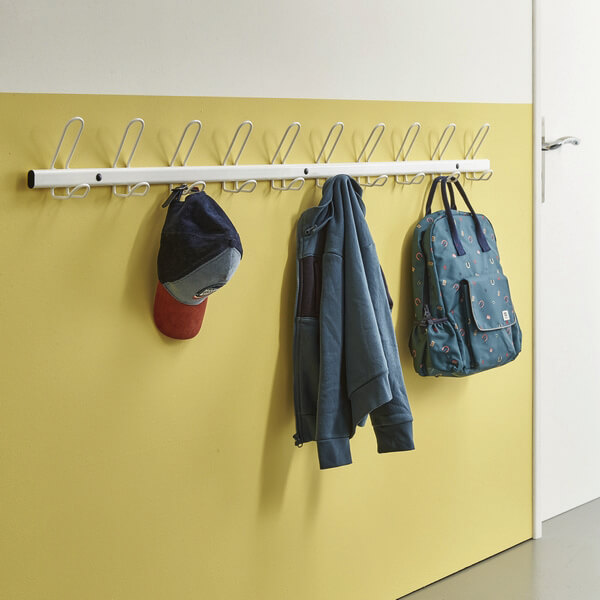 De même, pour le rangement des vêtements et cartables, accrochez aux murs des patères idéales pour suspendre leurs vestes et des meubles d'accueil pour les doudous et autres effets personnels.